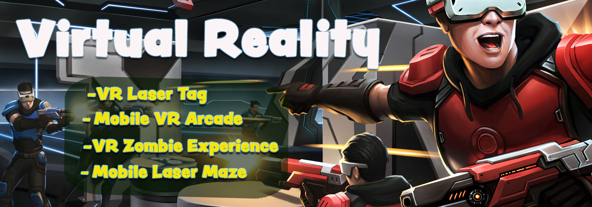 Experience Laser Tag like you have never experienced it before! Players put on a VR Headset and enter a virtual arena for an exciting game of Laser Tag. Up to 10 players play at a time. You provide the room and we will provide hours of Laser Tag fun!