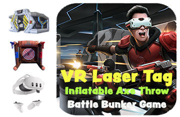 Experience the cutting-edge multiplayer FPS VR game that transforms any play area into an exhilarating shared-space, free-roaming VR arena. This package includes 8 headsets for Laser Tag for two hours as well as our Battle Bunker Interactive Game and Viking Axe Throw Game. This is a $1,500 value for only $900.