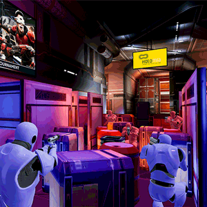 Our VR Laser Tag experience utilizes wireless vr headsets. Players put on their headsets and enter the play area. A computerized system runs the game and shows spectators a video view of the game. Players start the game by going to a charging area. Once players are fully charged, walls and obstacles rise and the game begins! Players now dodge the fire of other players as they manouver through a maze of walls and obstacles. When players take fire from other players they lose health and must return to their charging area. When this happens the walls and obstacles lower so players can walk directly to their charging area. Once they are charged again the walls and obstacle reapper and they continue play in the game.