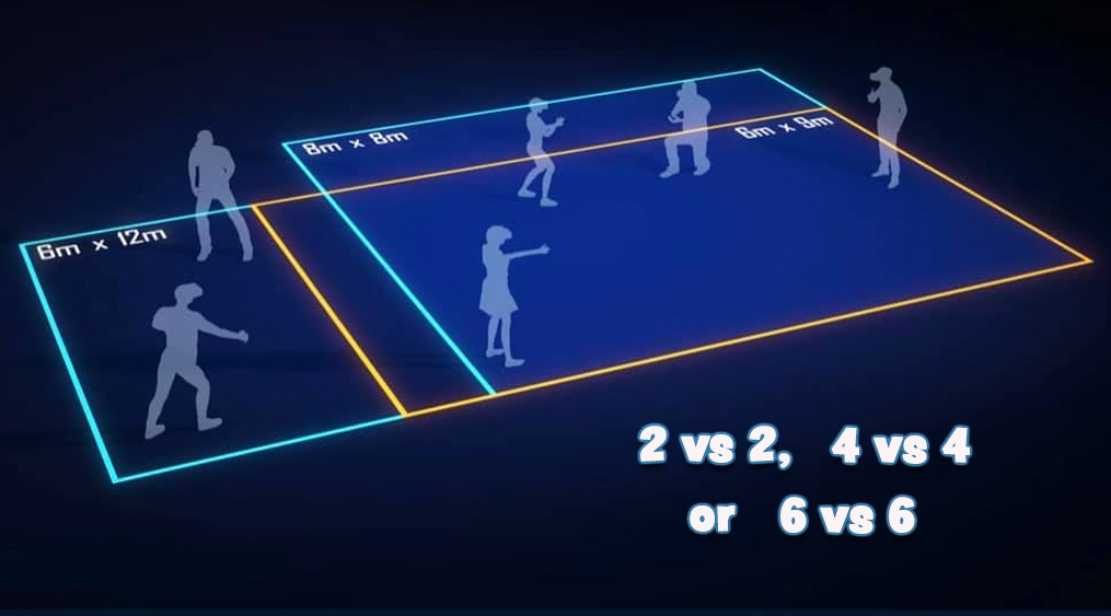 Choose from the following play area options: 13 by 13 feet, 16 by 23 feet, 20 by 20 feet, 20 by 30 feet, 26 by 36 feet, 20 by 39 feet, 26 by 46 feet, 50 by 65 feet. These are the only size options as they are built into the computer program. The playing area must be no smaller than 14 feet by 14 feet.
